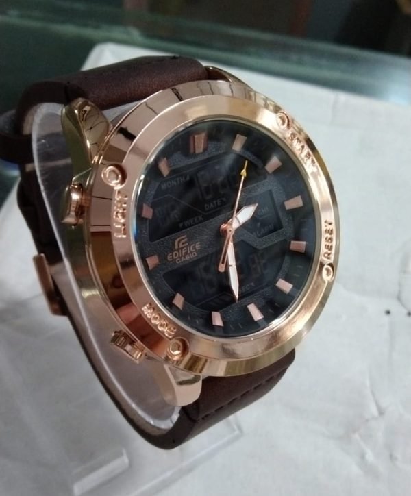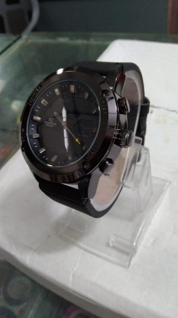 This stylish watch features a durable stainless steel case and a comfortable rubber strap. It comes with its box and is waterproof, making it suitable for everyday wear.